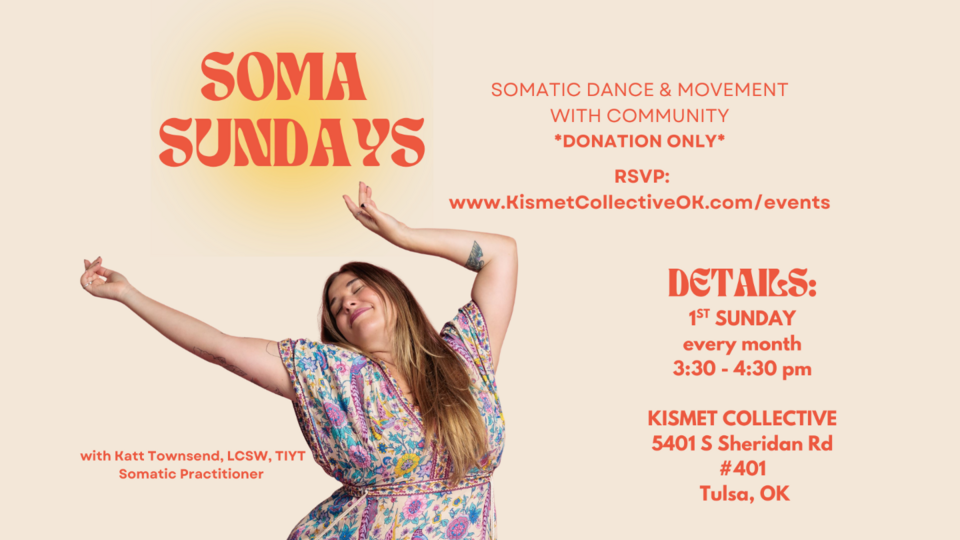 Every 1st Sunday of the month, this is a community gathering for us all to connect with our bodies and each other through somatic movement. This donation based class is a combination of beginner level dance, yoga and nervous system regulation practices Katt teaches in her private mental health Therapy practice.