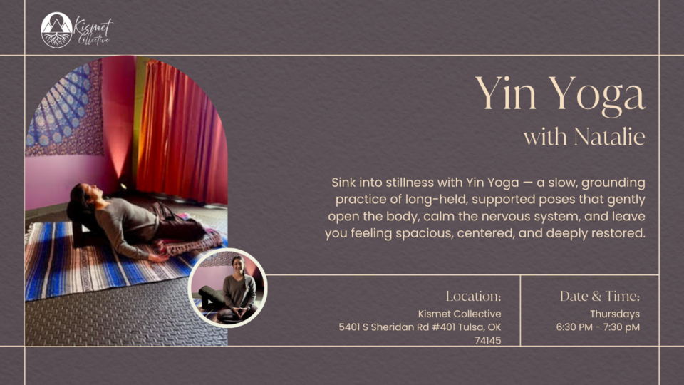 Yin Yoga is a slow, grounding practice designed to help you soften, listen, and reconnect with your body and breath. In this class, we hold seated and reclined postures for several minutes at a time, allowing the deeper layers of the body, fascia, and connective tissue to gently open without force.